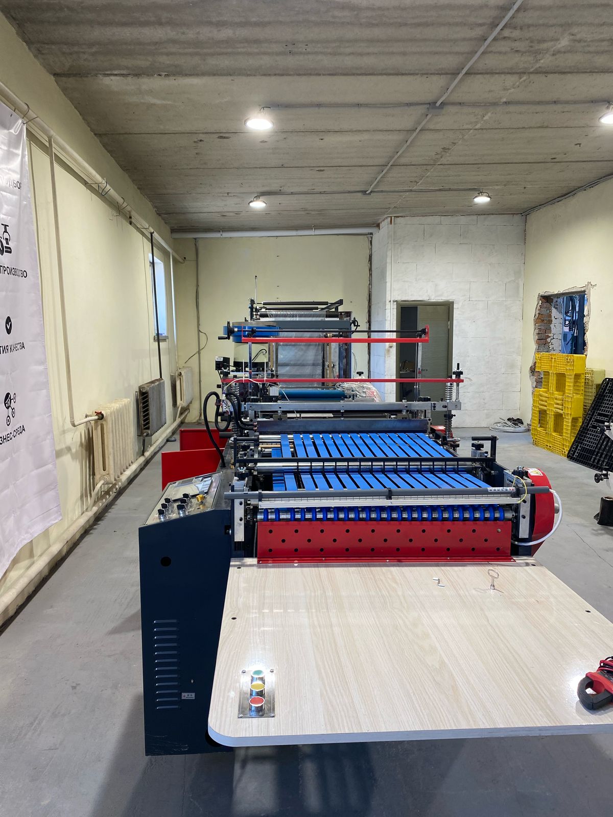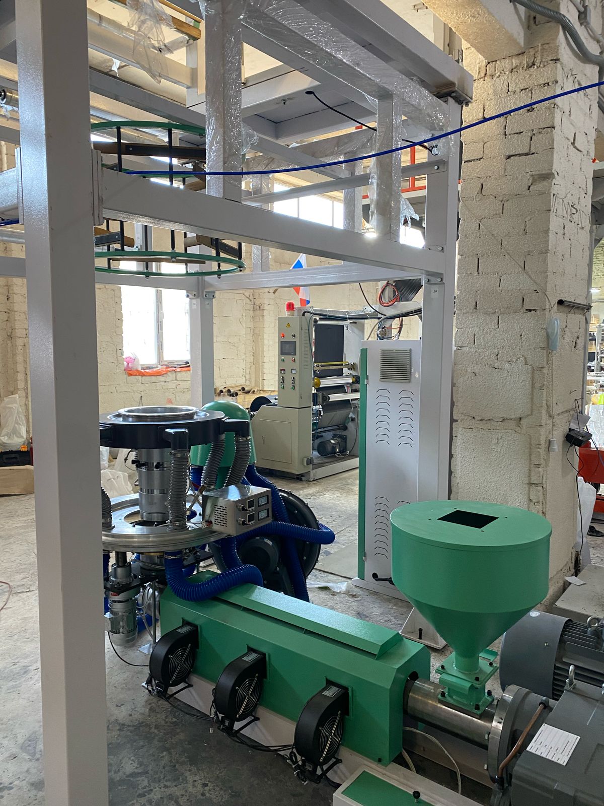 - экструдер PE 800 для непрерывного производства рулонной пленки — основного сырья для будущих пакетов.